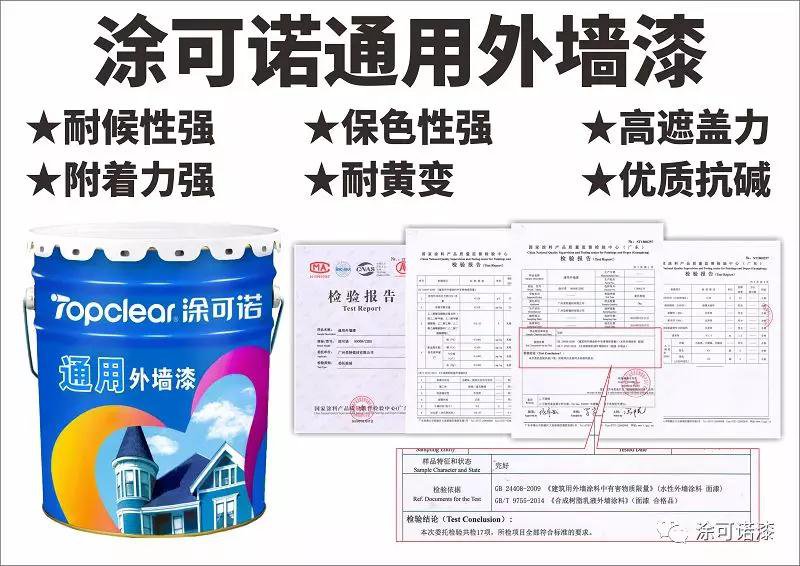 涂可诺通用外墙漆采用领先配方技术,选用优质环保原料精制而成,是特别为大厦、公寓等户外装饰设计的外墙漆。具有良好的防霉抗碱和耐候保色性能,能长久抵抗自然环境对建筑的侵蚀,对建筑外立面起到很好的保护装饰作用。该产品不仅性能优良,而且施工简单,遮盖力好,涂刷面积大,是一款性价比很高的外墙漆产品。