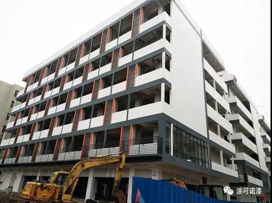此次佛山童话里·文创园使用了两款涂可诺漆进行施工,分别是使用了涂可诺全能抗碱底漆和涂可诺通用外墙漆进行外墙调色涂刷。