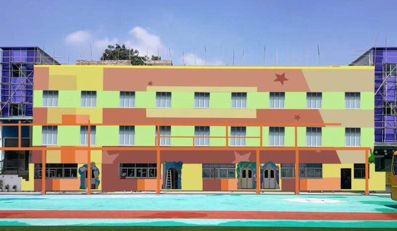 此次东莞塘厦华英幼儿园外墙涂装工程使用了涂可诺通用外墙漆进行外墙调色涂刷。
