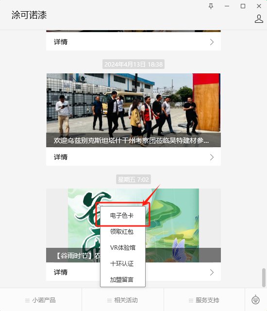 点击下方菜单栏【相关活动】-【电子色卡】进入界面,